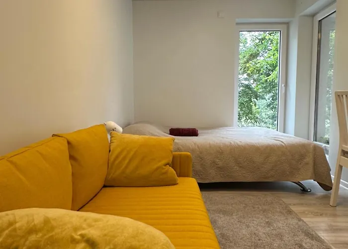 Studijos Tipo Apartamentai Palanga ligger ungefär 25 minuters promenad från Monkey Bridge och har utsikt över trädgården. Den här 20 m² stora lägenheten erbjuder en parkering på plats.